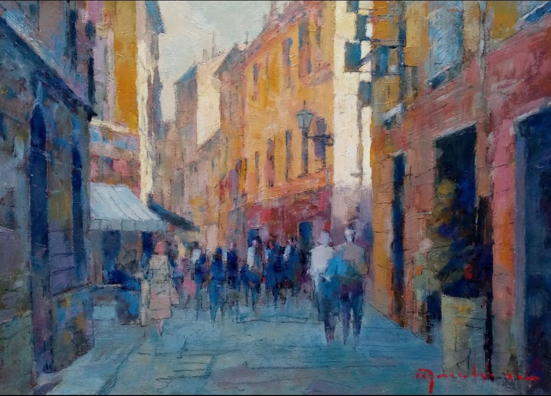 Artista: Walter MarcheseTecnica: Olio su tavolaDimensione: Cm 35x25Titolo: Centro urbano Sestri Levante